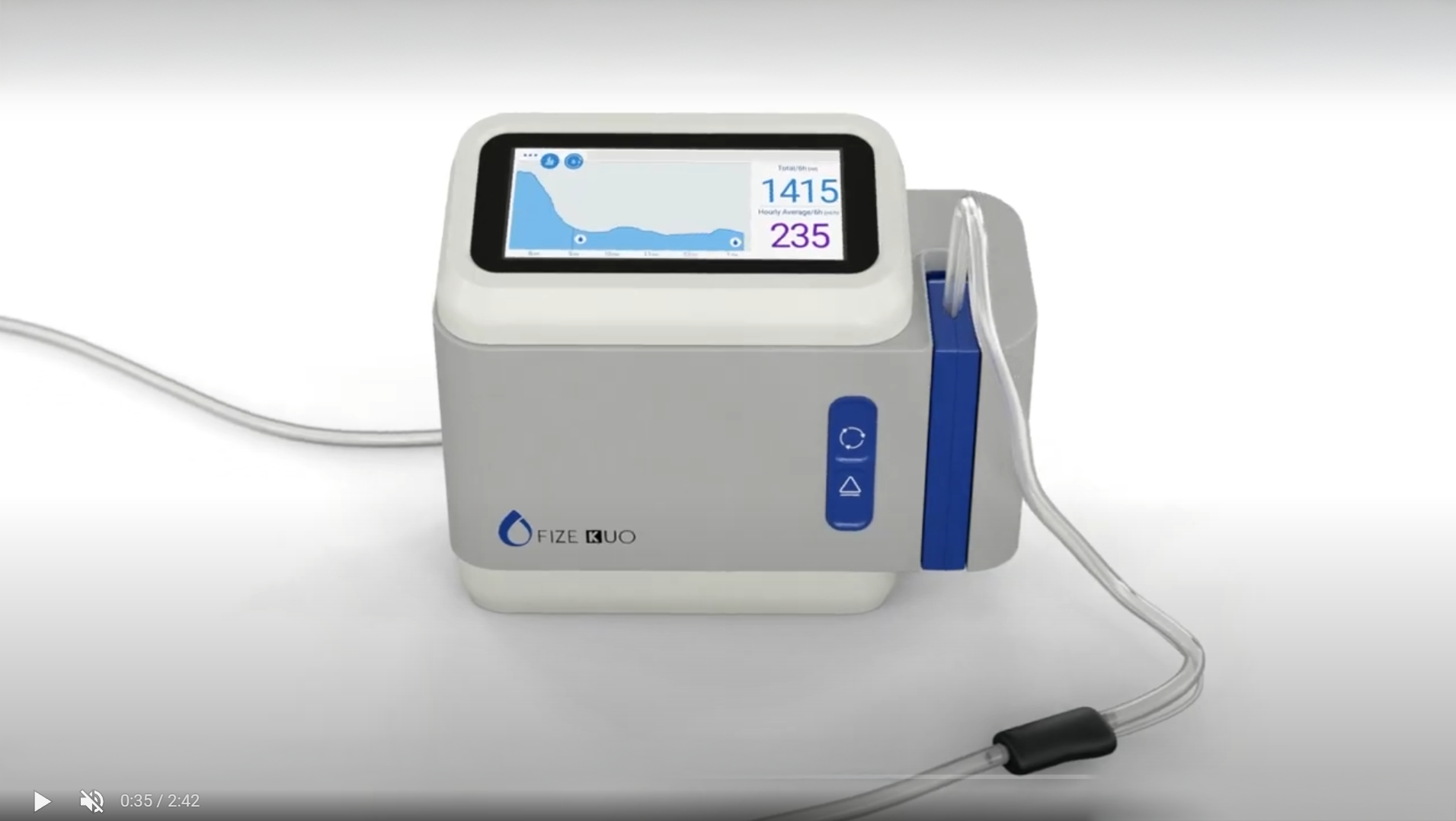 The FIZE kUO platform consists of a bedside monitor and a disposable kit. It offers hourly and trend-based visualizations, with customizable clinical and operational alerts.